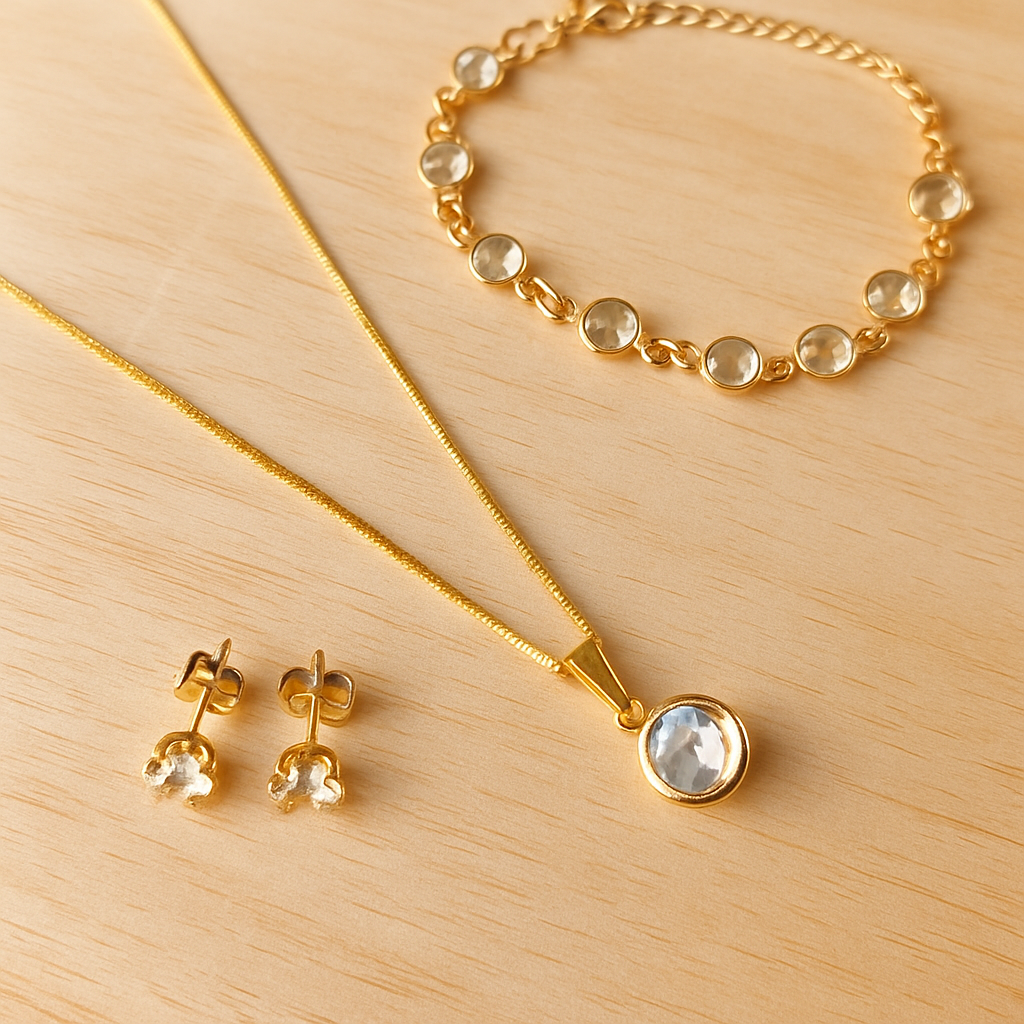Kit Conjunto Colar + Pulseira+ Brinco Ponto de Luz Banhado a Ouro 18k